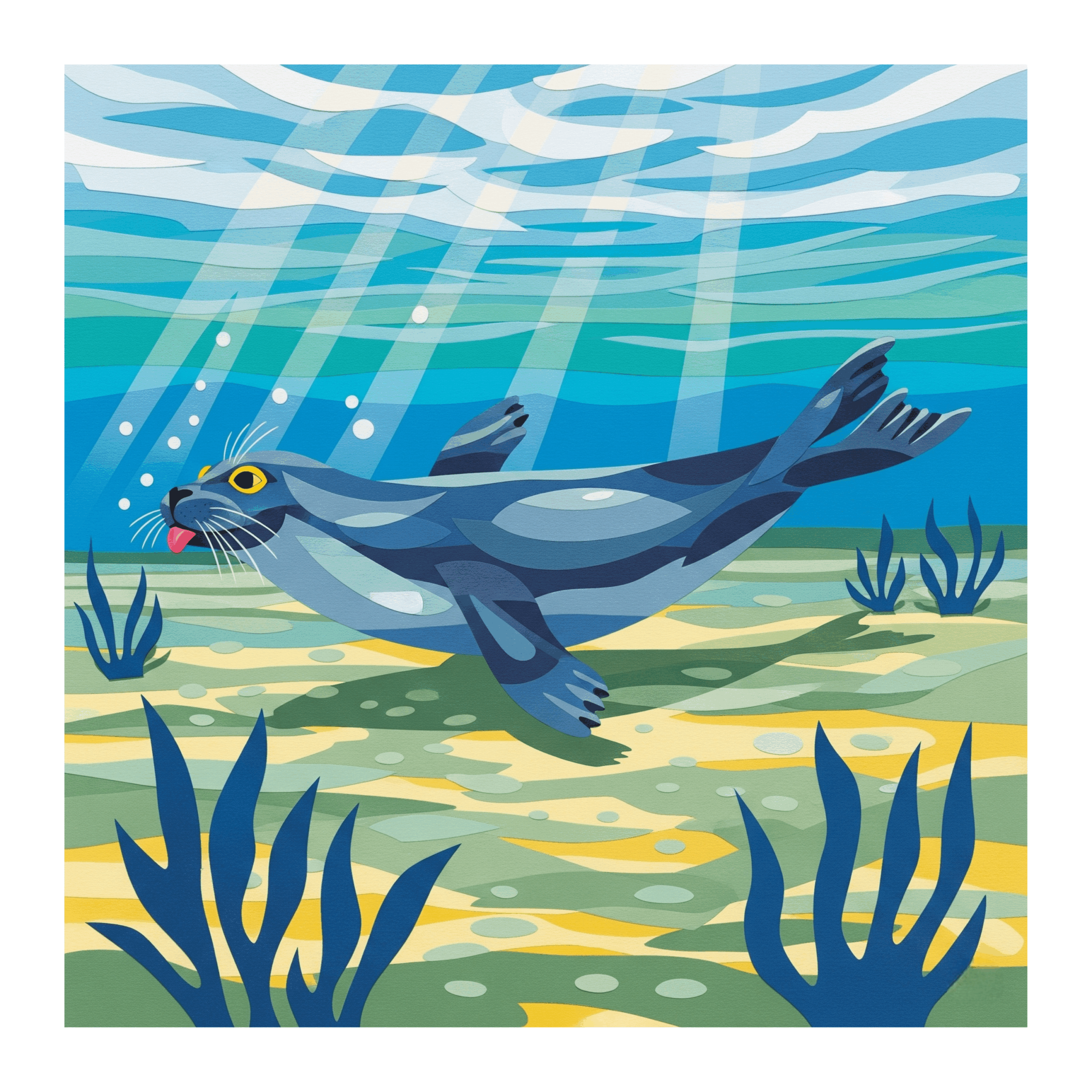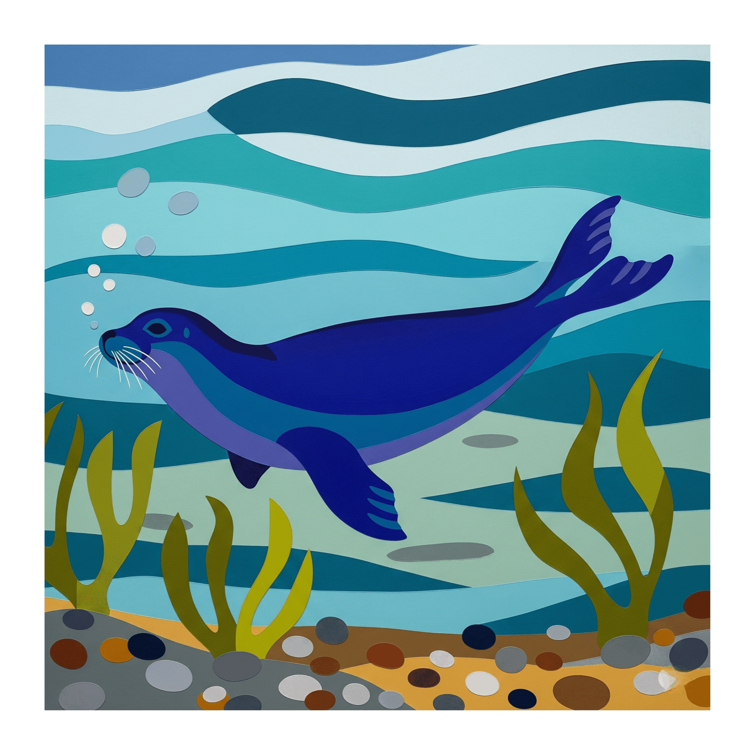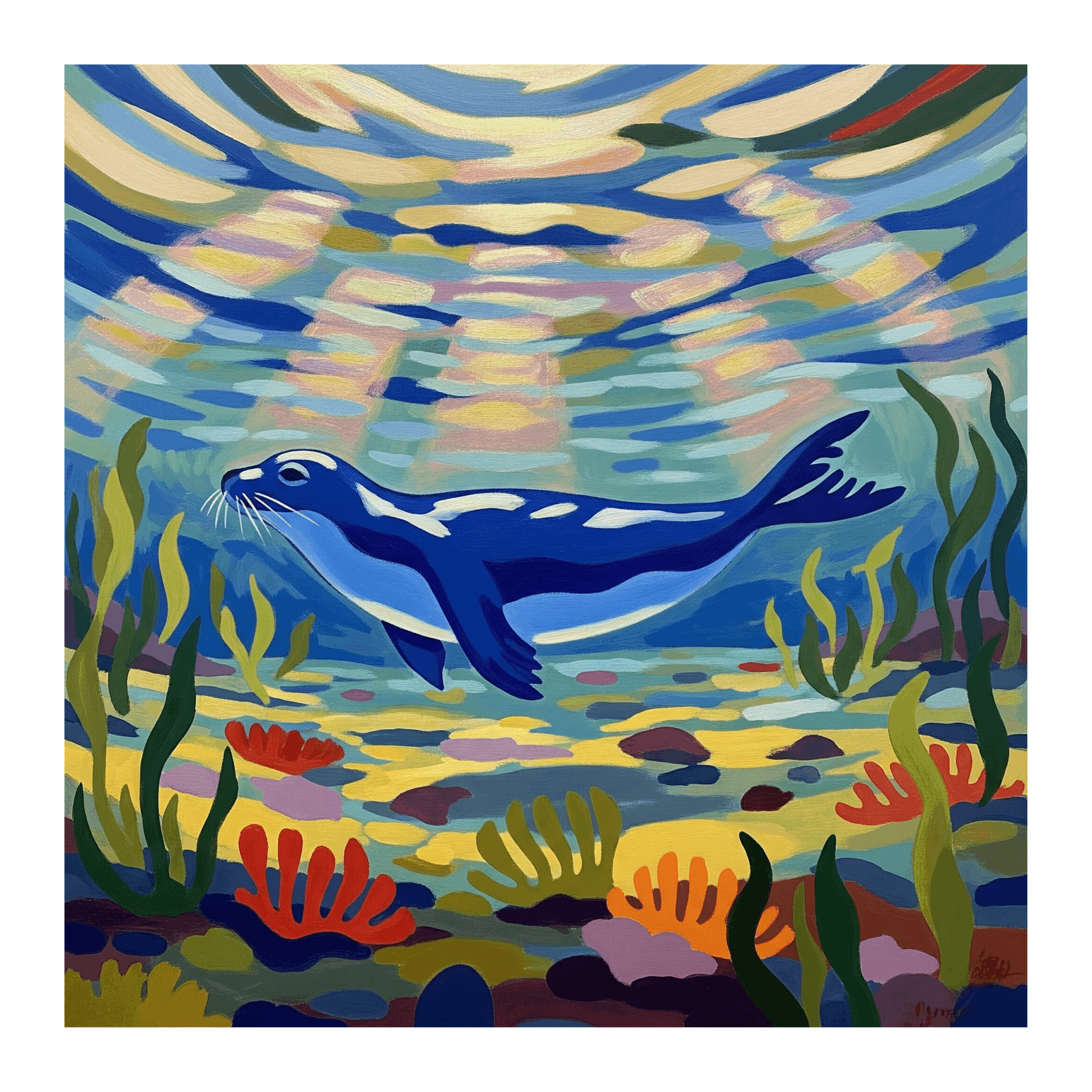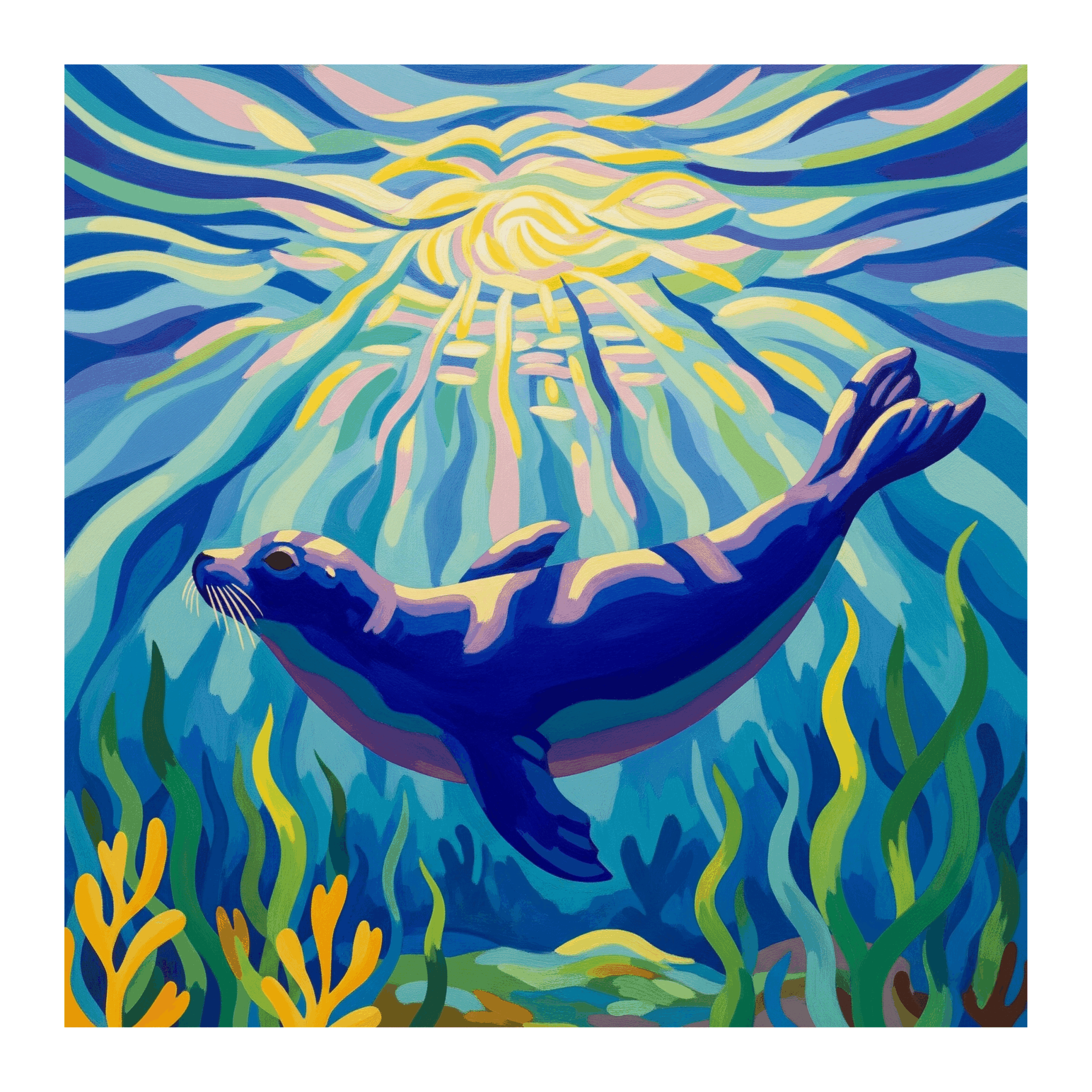 Een indrukwekkende weergave van zeehonden op de zandbanken, rustend tijdens laagwater. Uniek kunstwerkje op dibond plaatje.