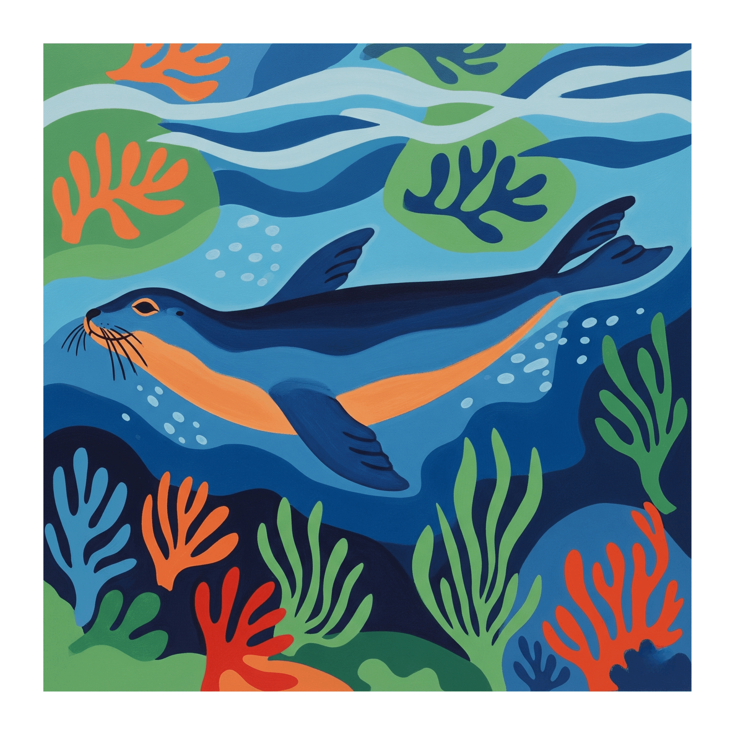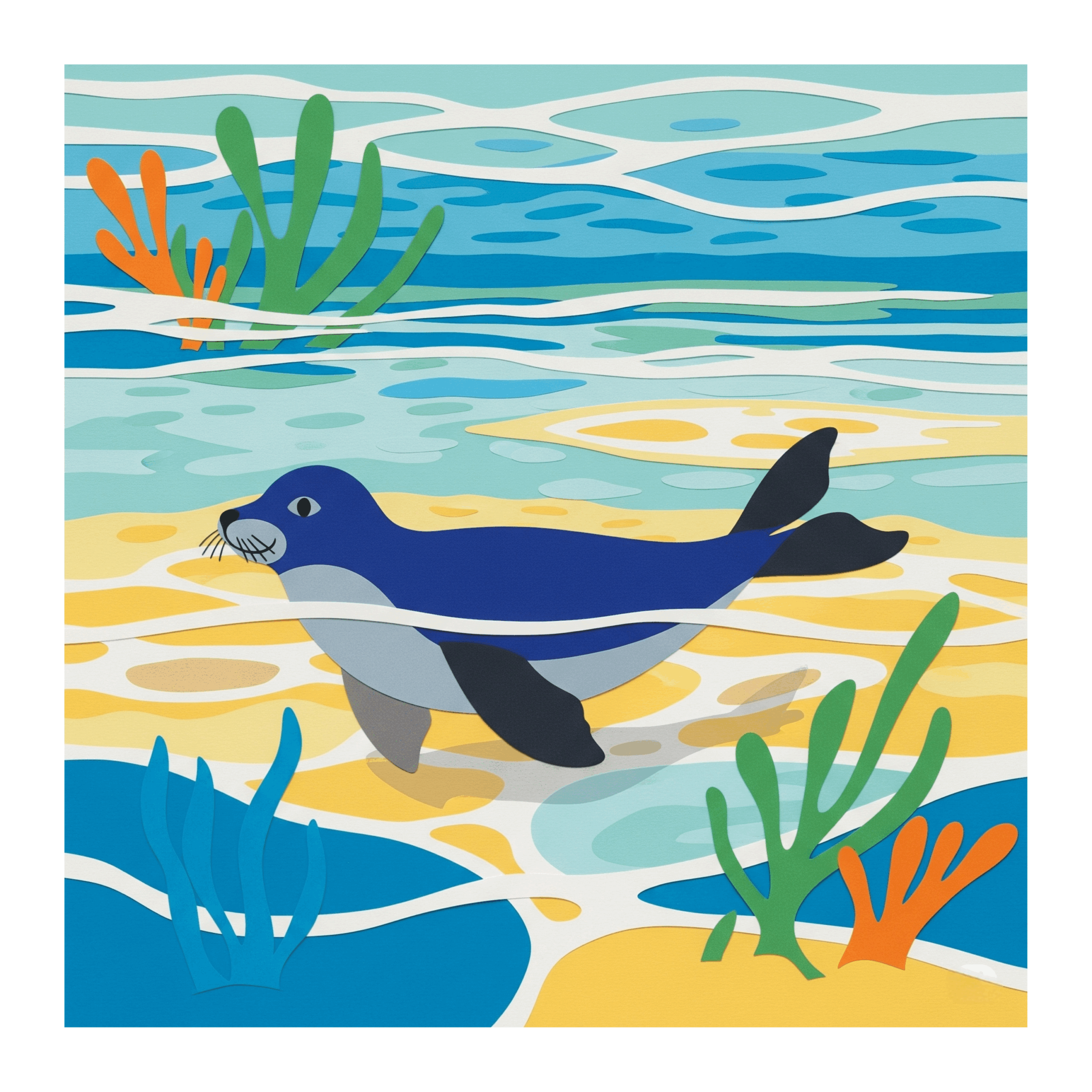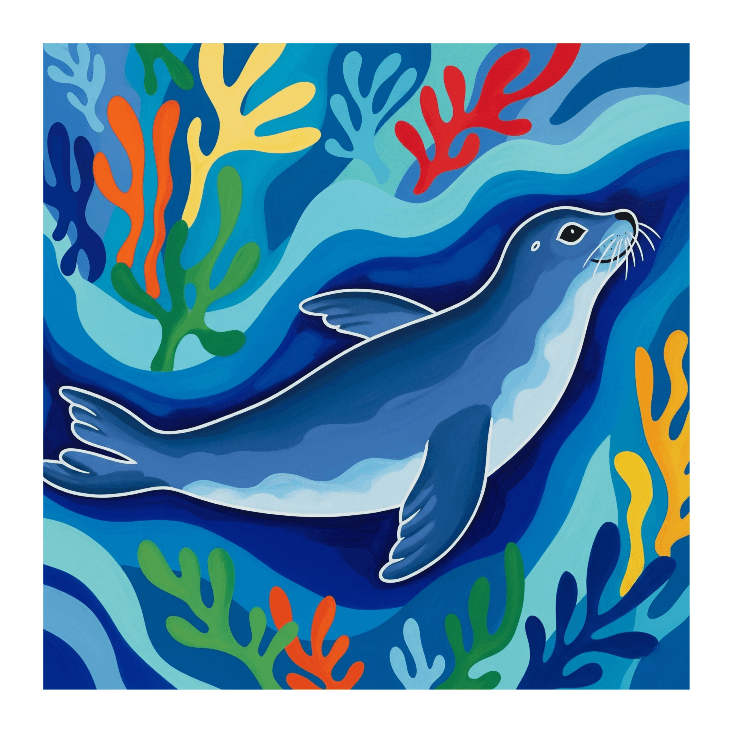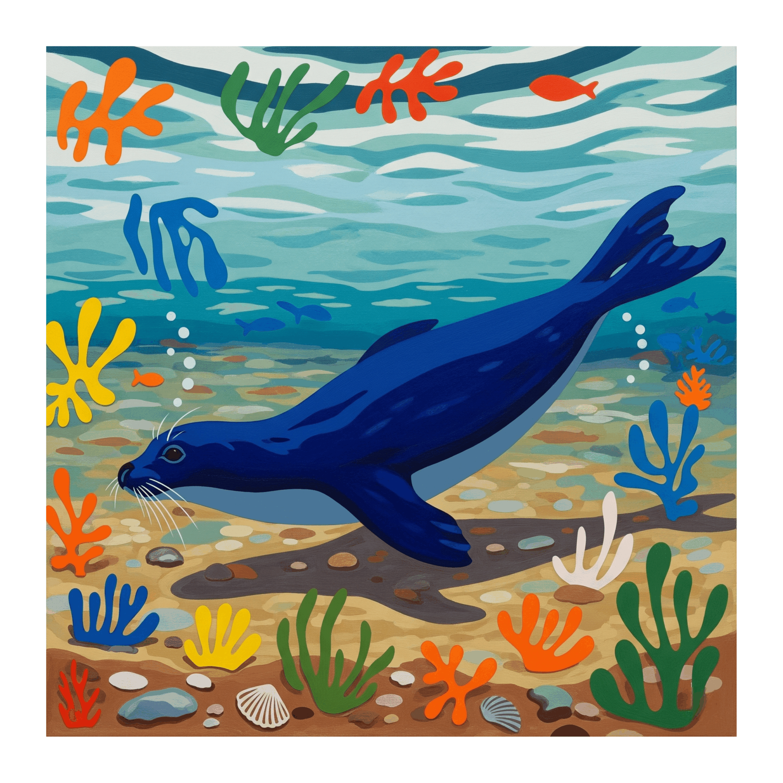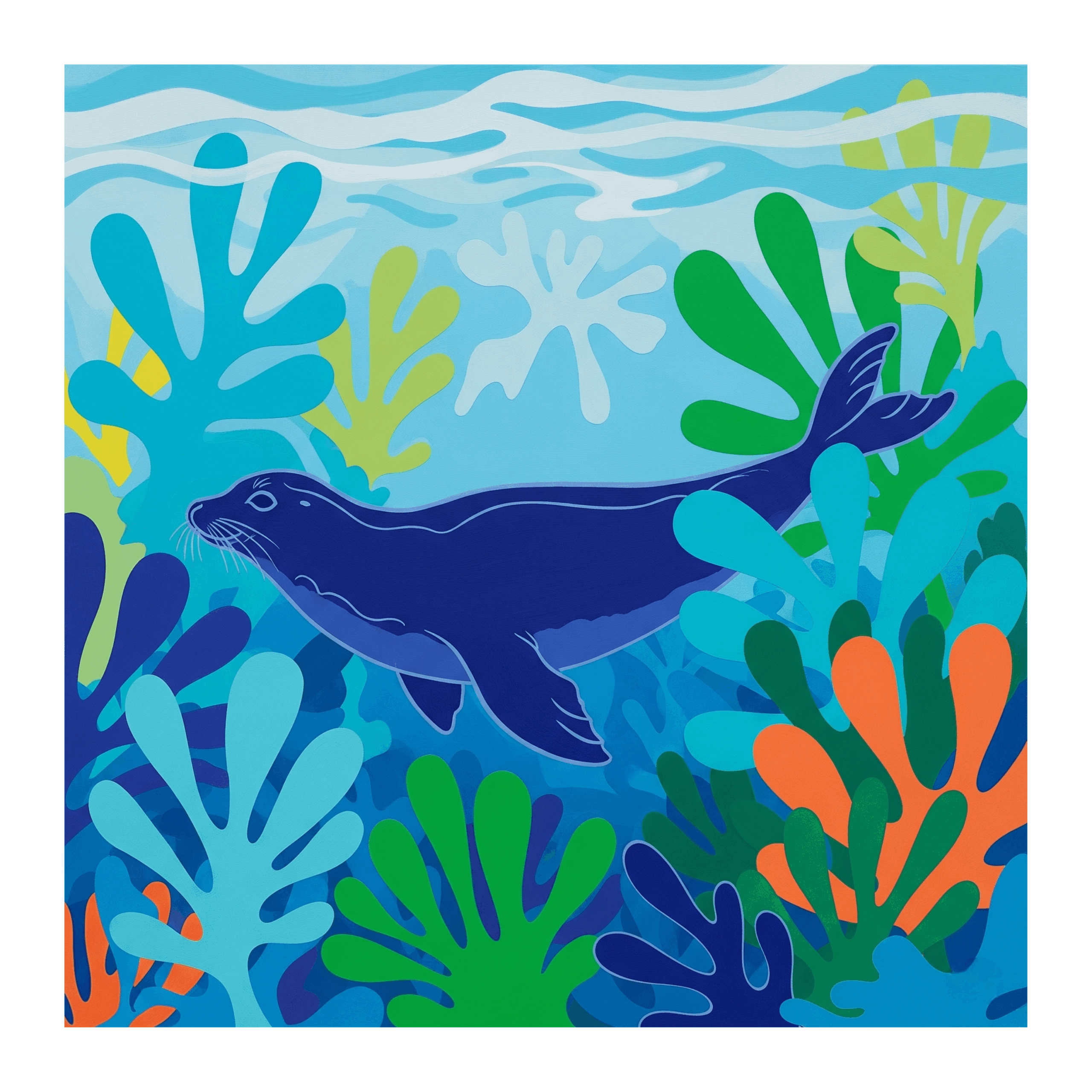 Een indrukwekkende weergave van zeehonden op de zandbanken, rustend tijdens laagwater. Uniek kunstwerkje op dibond plaatje.
