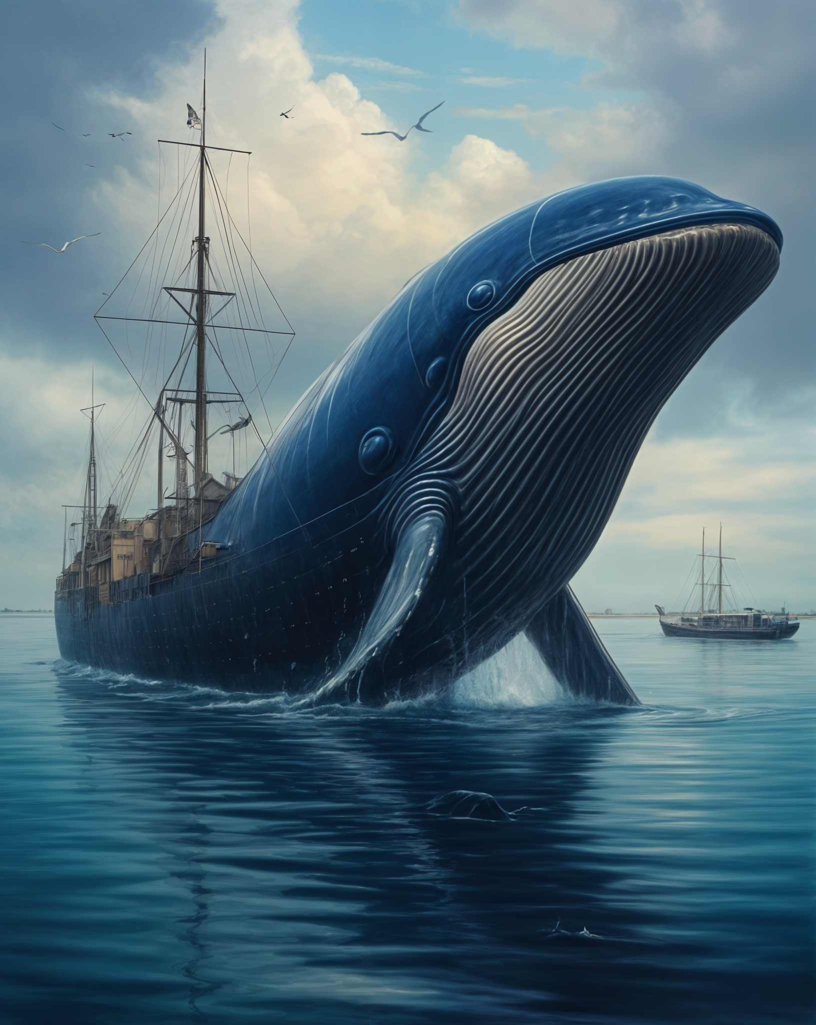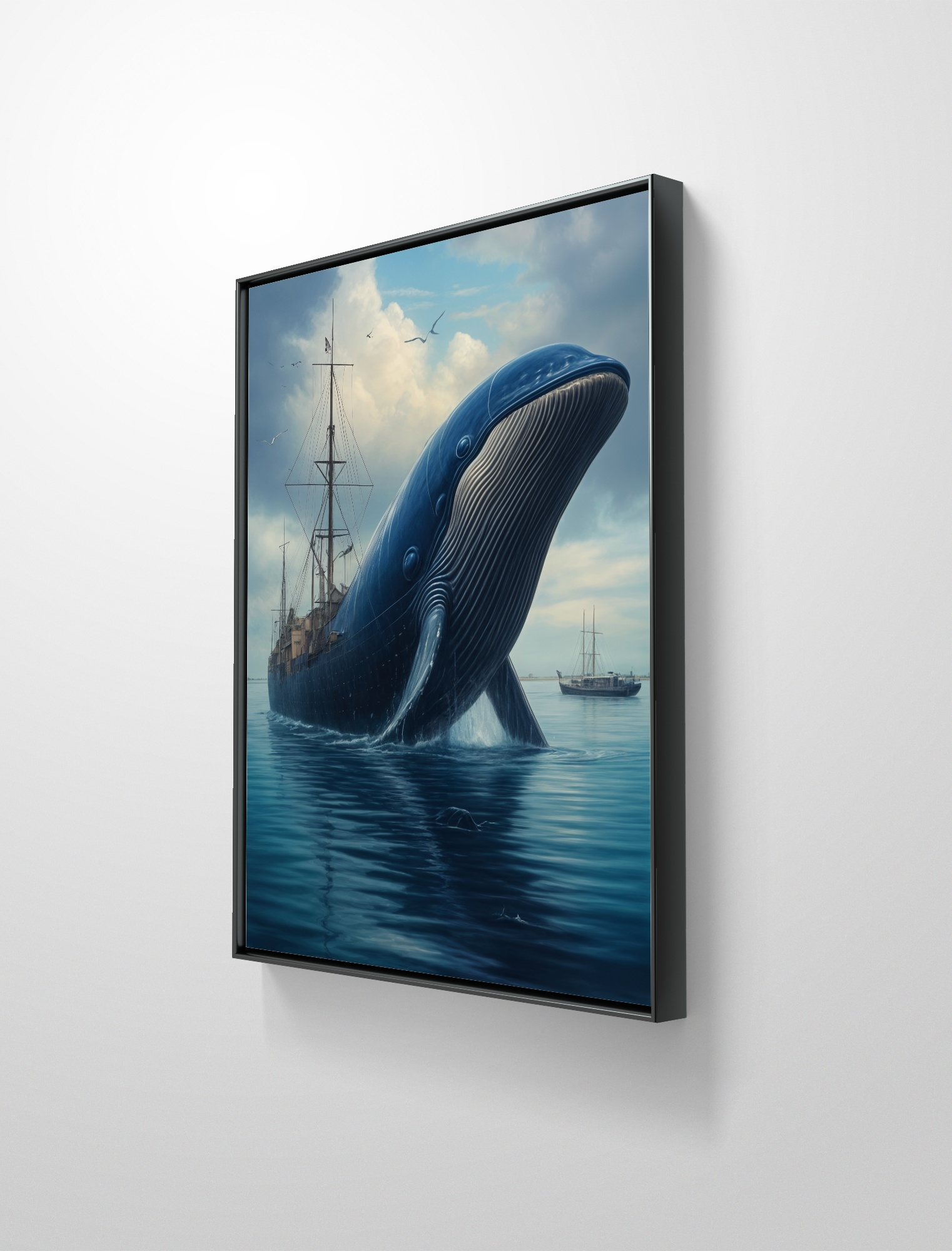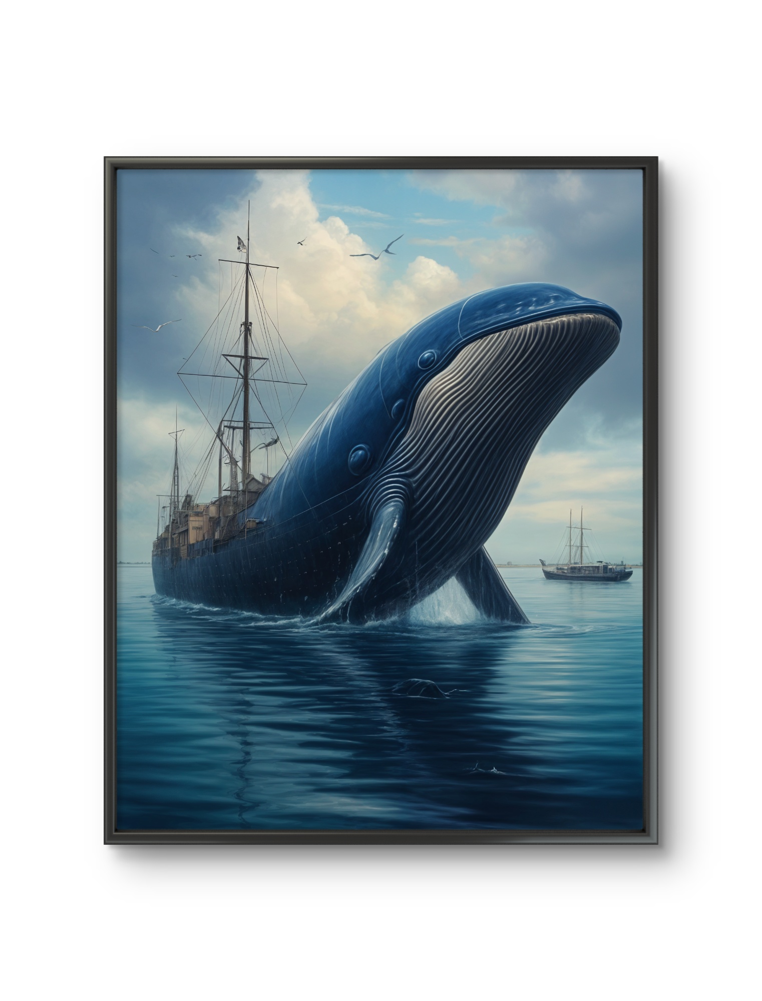 Ciglée op canvas met zwart houten baklijst uit de serie Walvisvaart. Formaat 25x30cm.