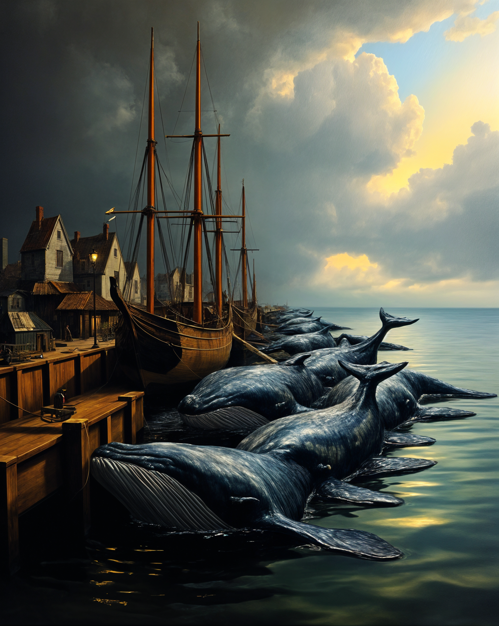 Ciglée op canvas met zwart houten baklijst uit de serie Walvisvaart. Formaat 25x30cm.
